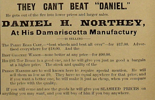 | Daniel H. Northey manufactured road carts and grocery wagons and included prices in his ads. |